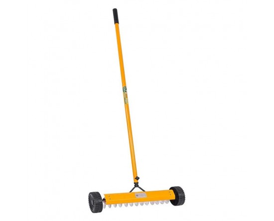 • Stainless steel 13 spikes and long steel handle with comfort grip and wheel for easy moment
